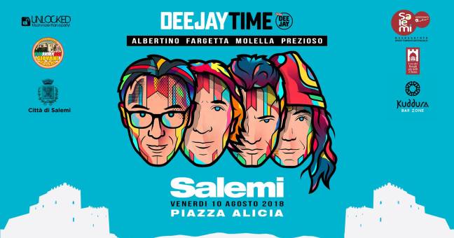 SALEMI (TRAPANI) – I grandi nomi di Radio Deejay si sono dati appuntamento per venerdì 10 agosto a Salemi, cittadina in provincia di Trapani, per l’unica tappa siciliana della ‘Deejay Time Reunion’. Albertino, Fargetta, Molella e Prezioso si alterneranno in piazza Alicia per ‘Unlocked Festival’, evento voluto dall’assessorato al Turismo del Comune di Salemi, guidato dal sindaco Domenico Venuti, e dall’associazione Giovani di Salemi. L’apertura è prevista per le 17 e sarà a cura di alcuni dj locali, poi saliranno in consolle i quattro grandi nomi di Radio Deejay. La storica piazza Alicia si trasformerà in un’arena dove arriverà la storia della musica dance. I biglietti sono acquistabili sulla pittaforma online ‘bookingshow.it’ al prezzo di 15 euro, esclusi i diritti di prevendita, presso l’associazione Giovani di Salemi, la sede della Pro Loco, in piazza Libertà, e il bar ‘Kuddura’ di Salemi in piazza Alicia.