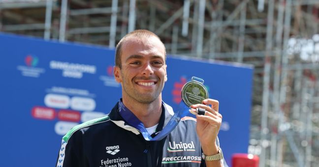 ROMA (ITALPRESS) – Anche nelle 5 km in acque libere dei Mondiali di nuoto, in scena a Singapore, l’Italia ha conquistato due medaglie d’argento. Esattamente come nelle 10 km, a ottenerle sono stati, al maschile, l’emiliano, “eterno” ed epico Gregorio Paltrinieri (tesserato Coopernuoto e Fiamme Oro), più forte anche della frattura al dito della mano sinistra rimediata nel corso della prima gara della kermesse iridata, e, al femminile, la toscana Ginevra Taddeucci (Canottieri Napoli e Fiamme Oro).