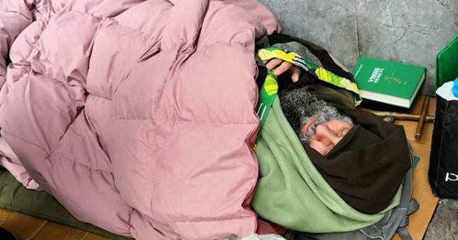 I suoi volontari raccontano: “Praticamente è digiuno da cinque giorni, ogni sera prende la comunione. Ma, nella privazione, la sua volontà si fortifica”. Ed è questo che traspare. Gli occhi del missionario laico che dorme sotto i portici delle Poste, in via Roma, per combattere l’indifferenza, sono accesi d’azzurro.