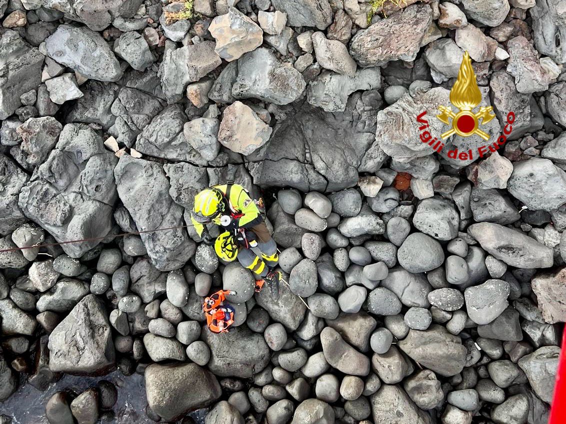 Vista la difficoltà di effettuare il soccorso via terra è intervenuto l’elicottero del reparto con a bordo gli elisoccorritori che, dopo averla assistita e messa in sicurezza, l’hanno recuperata con il verriccelo e portata all’ospedale Cannizzaro di Catania.