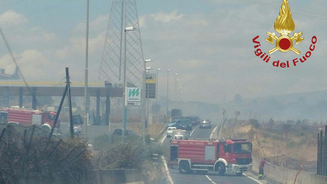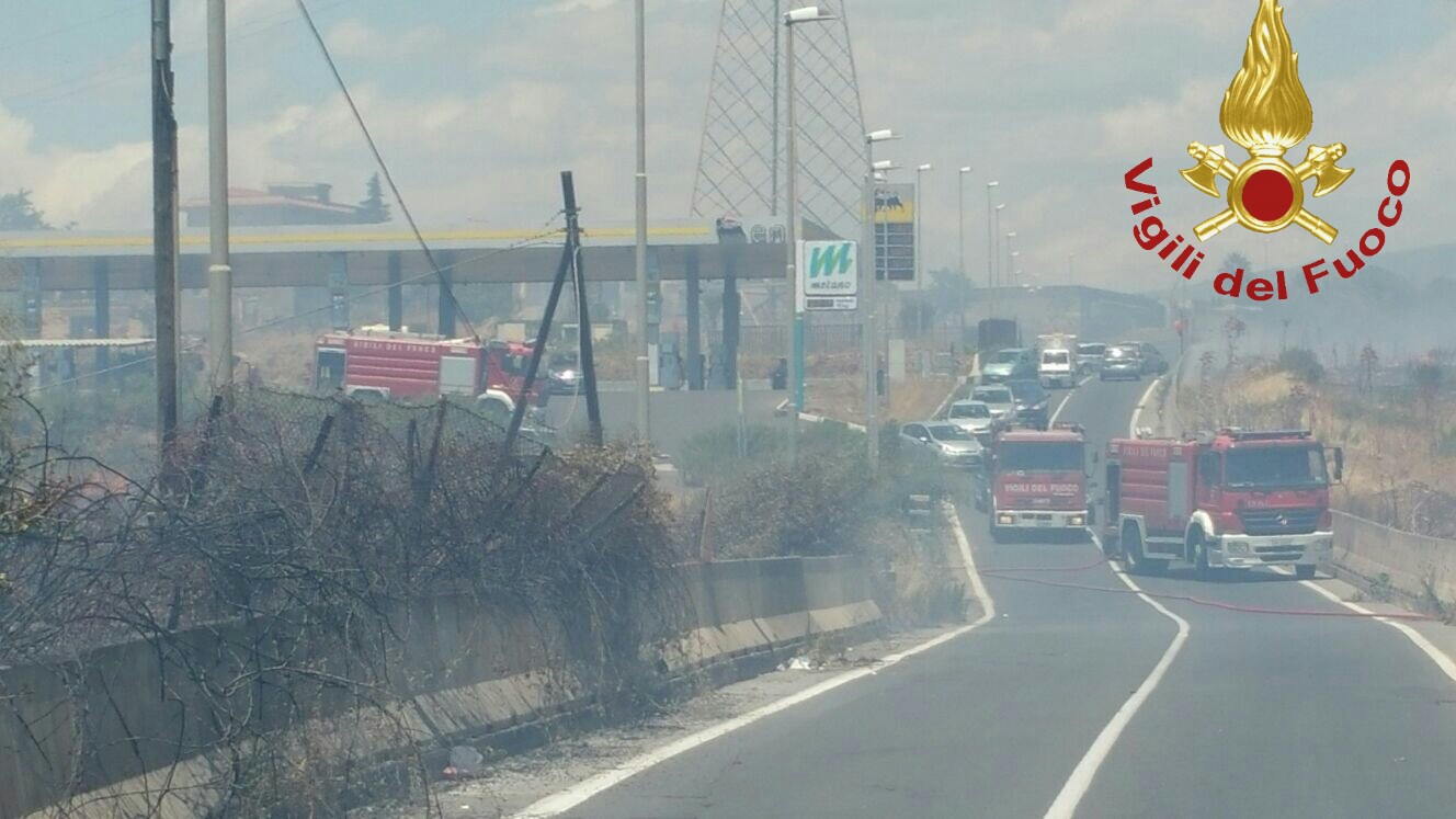 Il rogo ha interessato anche alcuni fusti di olii: intervento dei Vigili del fuoco