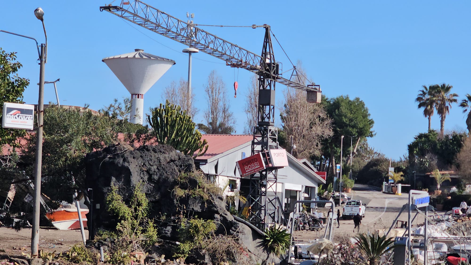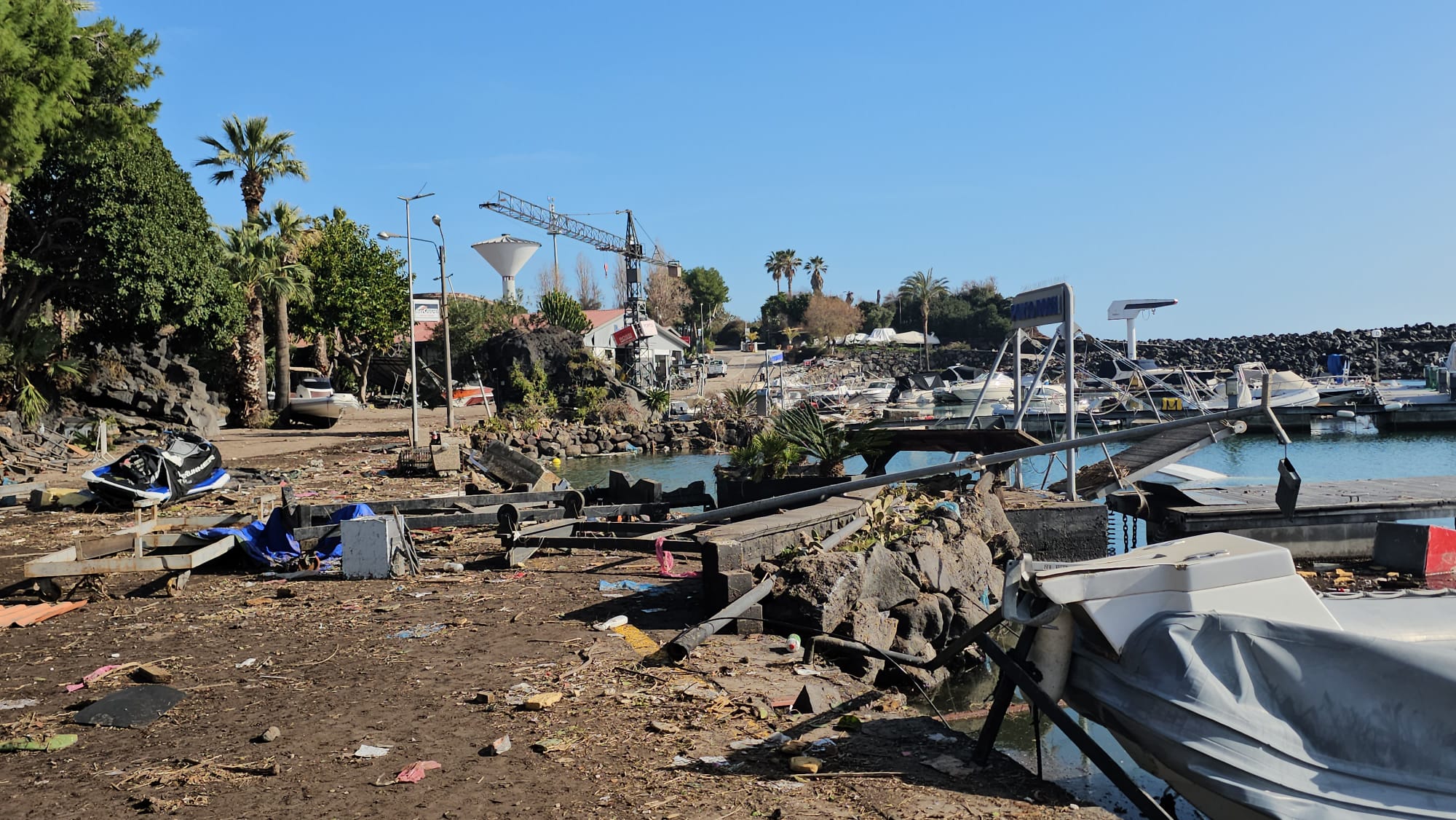 Ed anche dalle parti del porto Rossi le immagini assumono il contorno apocalittico. Anche il porticciolo turistico, rifugio per diverse barche, è stato azzerato. Pure qui sarà tutt’altro che semplice ripartire.