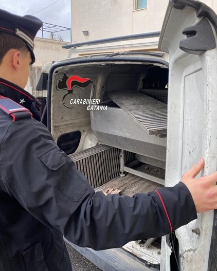 I Carabinieri lo hanno intercettato e controllato. Nel vano di carico erano state nascoste numerose grate in acciaio e un banco refrigerato in acciaio inox. Tutto era stato appena rubato.