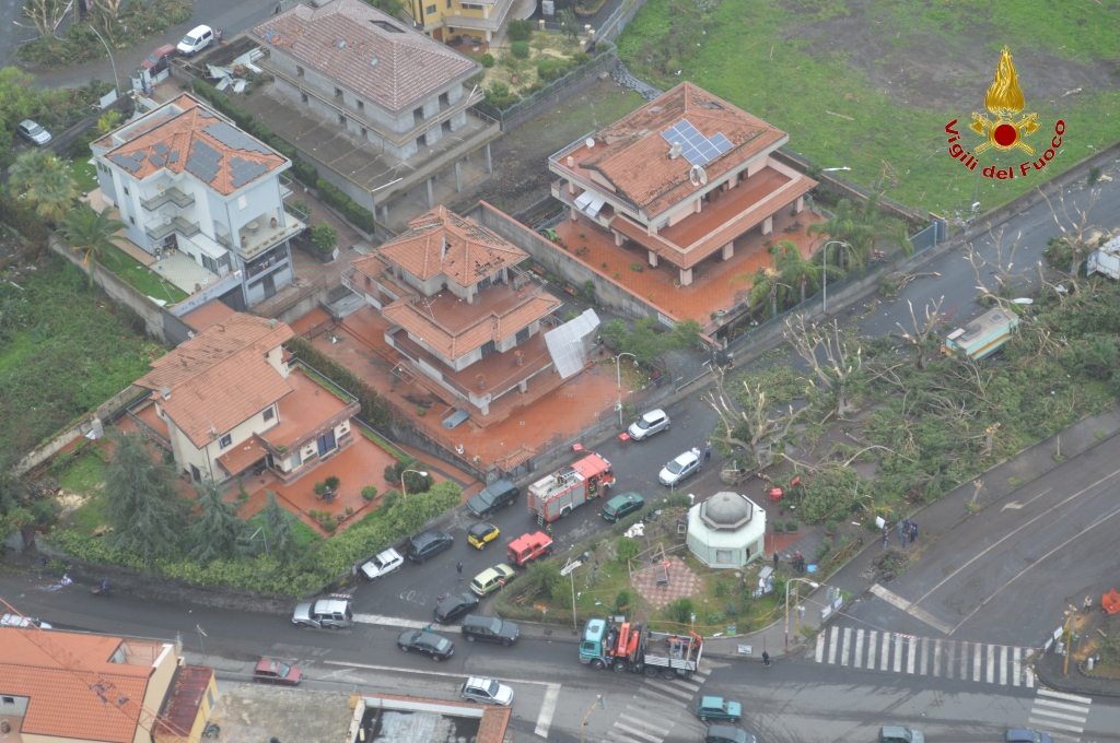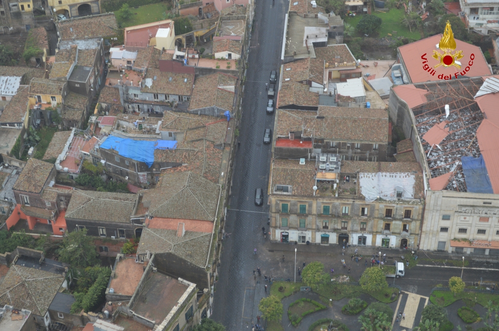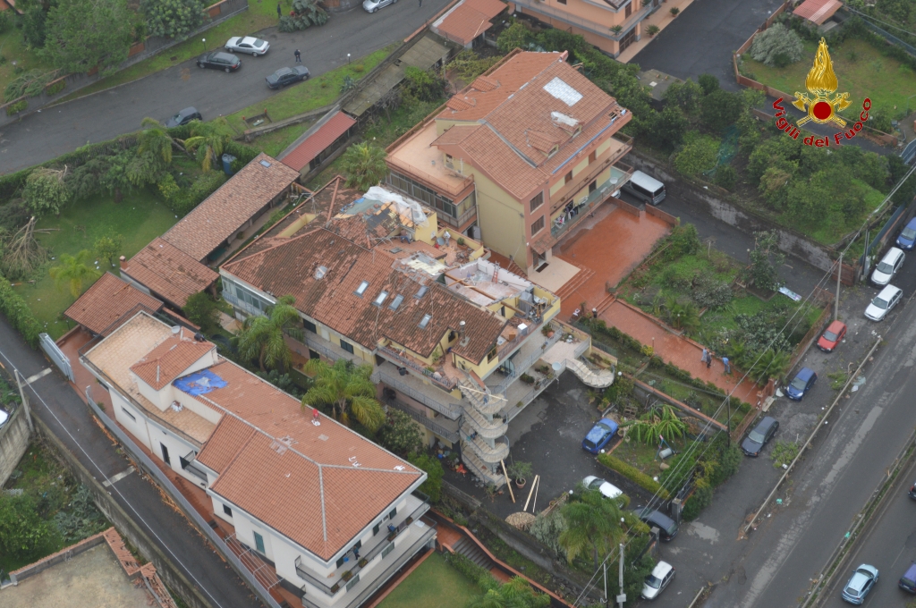 Tetti scoperchiati e abitazioni sventrate. Ecco Acireale vista dall'elicottero dei pompieri dopo la tempesta di ieri