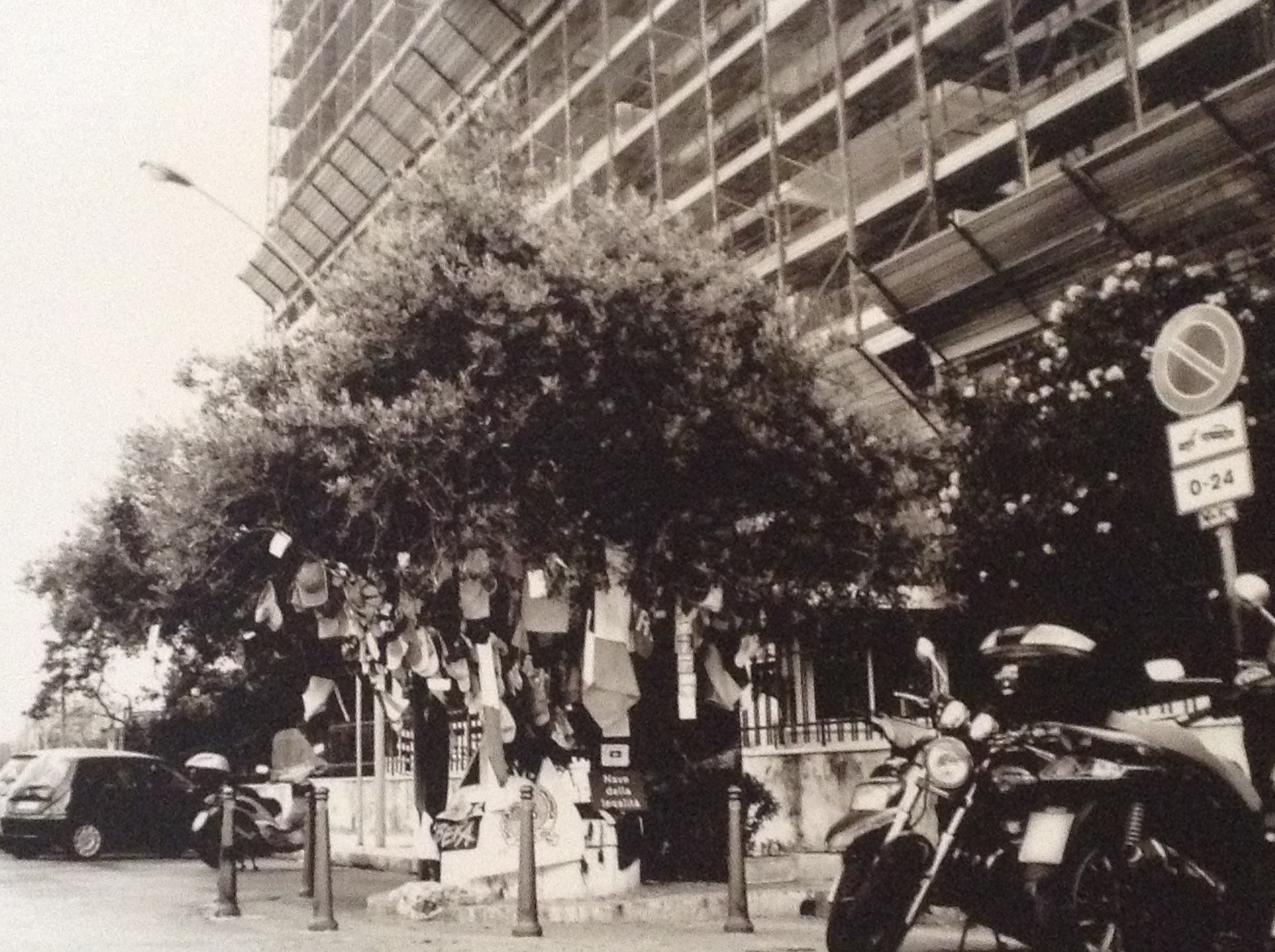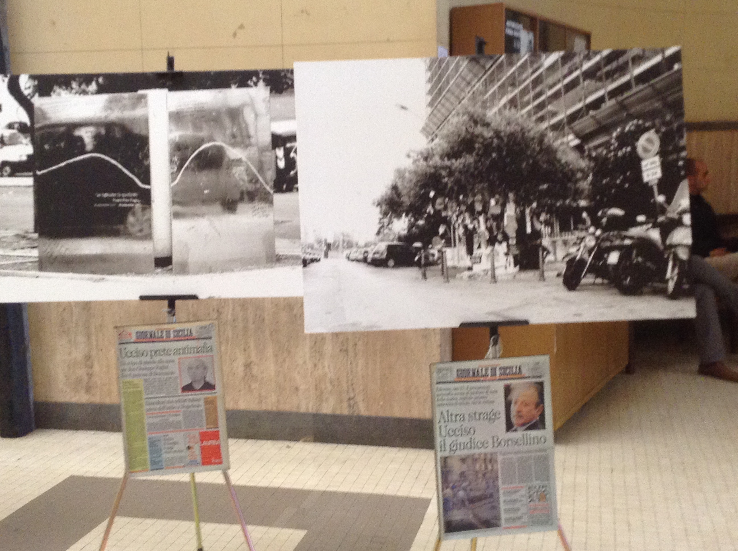 La sequenza di foto in bianco e nero raffigura i luoghi delle stragi e degli omicidi di mafia tra macchine posteggiate sotto le lapidi, sacchetti di spazzatura e incuria di ogni tipo in una Palermo incapace di ricordare ogni giorno e non soltanto nelle date comandate.