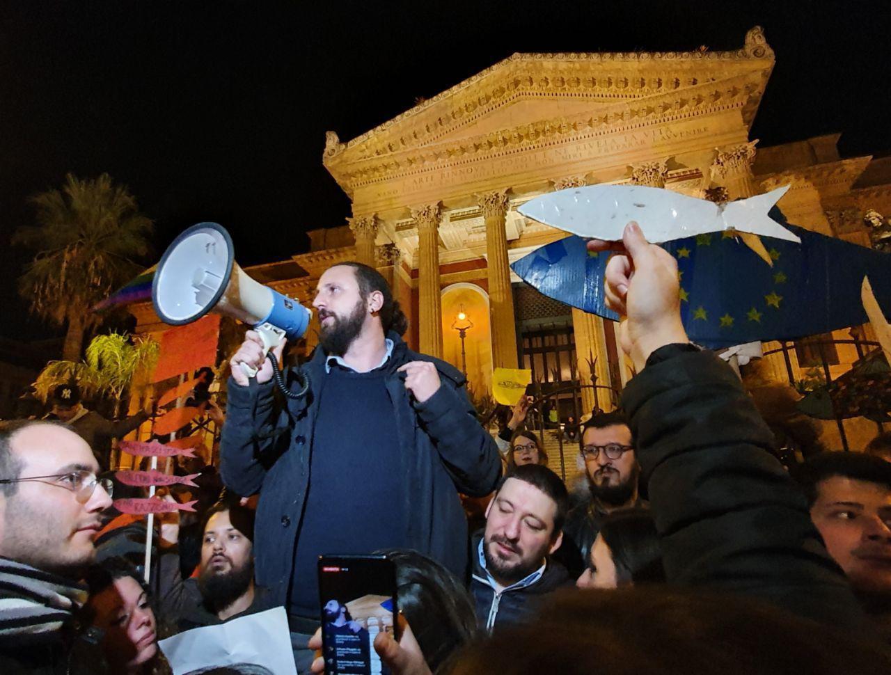 PALERMO - La prima manifestazione organizzata nel capoluogo siciliano dal movimento delle 'sardine'. Tra Bologna, Modena e altre città italiane, il movimento - che si considera privo di influenze politiche - ha già riunito migliaia di persone in aperta protesta contro l'ex ministro dell'Interno Matteo Salvini e la Lega.