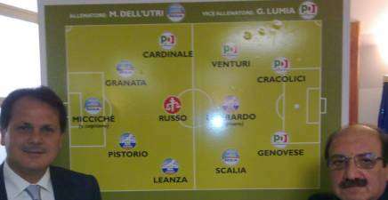 “Il Lombardo ter è un governo abusivo, immorale e illegittimo”, con queste parole, inequivocabili, il segretario dell’Udc Saverio Romano (che ha esemplificato i concetti, mostrando – come nella foto – la formazione degli avversari), ha bocciato senz’appello il nuovo esecutivo regionale ed “il ribaltone realizzato con la complicità del Partito Democratico”. Secondo il segretario centrista, infatti, l’operazione portata avanti dal governatore costituisce “una inaudita violenza nei confronti della libera espressione della volontà degli elettori, i quali avevano deciso la coalizione vincente e la collocazione del Pd all’opposizione”. E parole di fuoco sono state pronunciate da Romano, durante la conferenza stampa di presentazione della campagna di informazione politica contro il “ribaltone realizzato da Lombardo”, proprio all’indirizzo dei democratici siciliani, rei di aver “realizzato un’operazione di Palazzo, per partecipare al governo e alla spartizione dei posti di sottogoverno, comprese le nomine dei dirigenti, tradendo così la volonta degli stessi elettori del Pd”. Romano ha poi auspicato una modifica alla legge elettorale regionale, in modo tale da “consentire ai deputati di poter sfiduciare il governo, senza però dover lasciare il proprio scranno”. Nel corso della conferenza stampa, alla quale erano presenti anche il capogruppo dello Scudocrociato a Sala d’Ercole Rudy Maira e i deputati Cordaro e Gianni, Romano ha anticipato la decisione del gruppo assembleare dell’Udc di presentare, nel corso della seduta d’aula di questo pomeriggio, un ordine del giorno per bocciare la relazione di Lombardo e per mettere alla prova le reali intenzioni del Pd, il quale -secondo il pensiero di Romano- non farà mancare il suo voto di sostegno al governo, “sancendo così ufficialmente il ribaltone”. Romano, a conclusione del suo intervento, ha anche tratteggiato un quadro assai fosco e preoccupante della situazione dell’economia siciliana: citando dati Istat e della Banca d’Italia, ha parlato di “deserto economico siciliano, con livelli elevatissimi di disoccupazione, soprattutto tra i giovani, con il crollo degli appalti pubblici, con un indebitamento sempre maggiore delle famiglie siciliane e con il calo perfino dei flussi turistici”. “Di fronte a una situazione di questa gravità-ha concluso il segretario dei centristi- “ci si riempie la bocca con le riforme ma poi si continua a trascurare la crisi e non si mettono in atto progetti concreti di ripresa e in favore delle imprese e dei lavoratori siciliani”. Rispondendo alle domande dei cronisti, Romano ha poi definito “squadra che retrocederà la Sicilia, quella capitanata da Lombardo e formata dai vari Miccichè, Lumia, Genovese e Cracolici”.