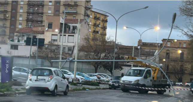 Nel capoluogo siciliano, in via Paulsen è caduto un palo dell’illuminazione. Non si registrano, fortunatamente, feriti.