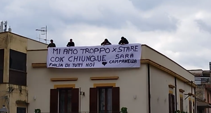 In una palazzina della piazza è stato srotolato uno striscione con scritto: “Mi amo troppo per stare con chiunque. Sara Campanella figlia di tutti noi”.