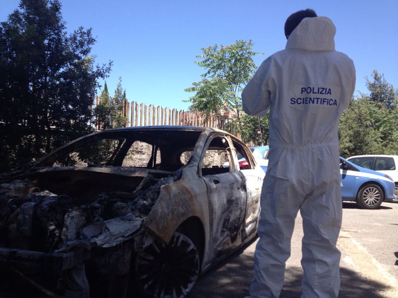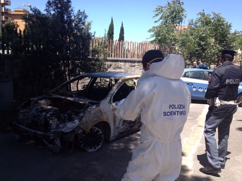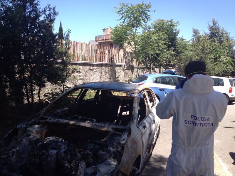 Le immagini del ritrovamento a Bellolampo dell'auto utilizzata dal commandko che sabato sera ha ucciso con quattro colpi di pistola il commerciante Daniele Discrede.