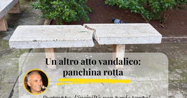 PALERMO – Spaccata in due una delle panchine di marmo installate a Palermo, nel quartiere Brancaccio, per ricordare don Pino Puglisi, il sacerdote ucciso dalla mafia 32 anni fa.