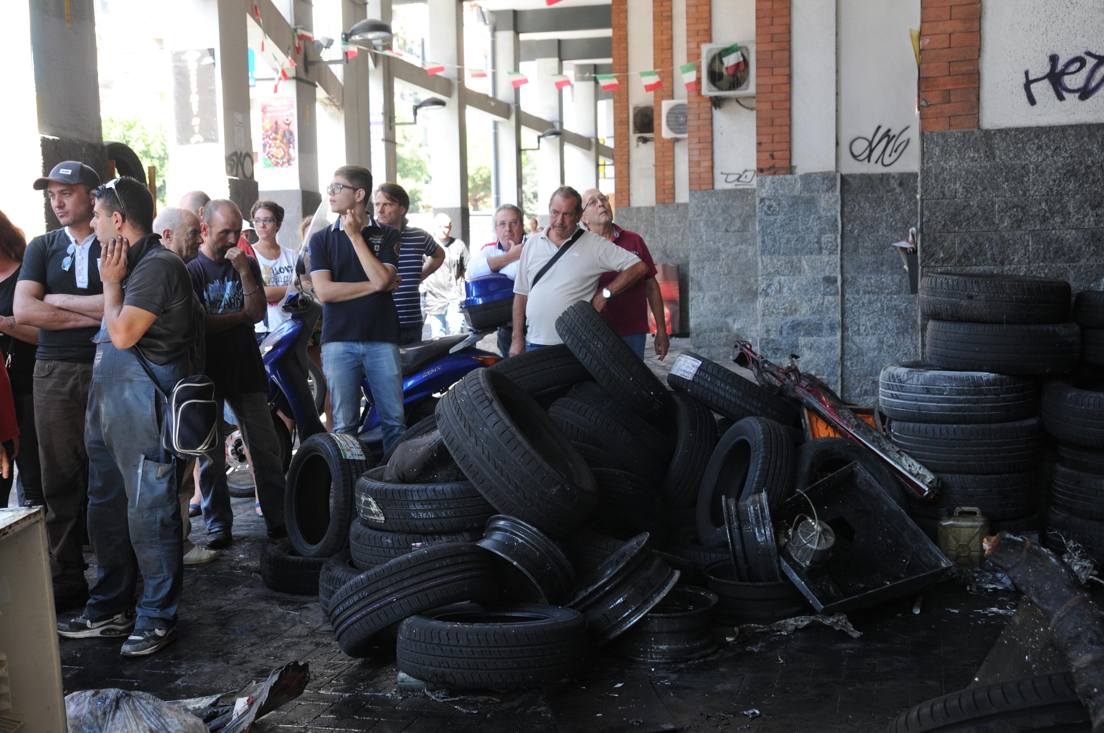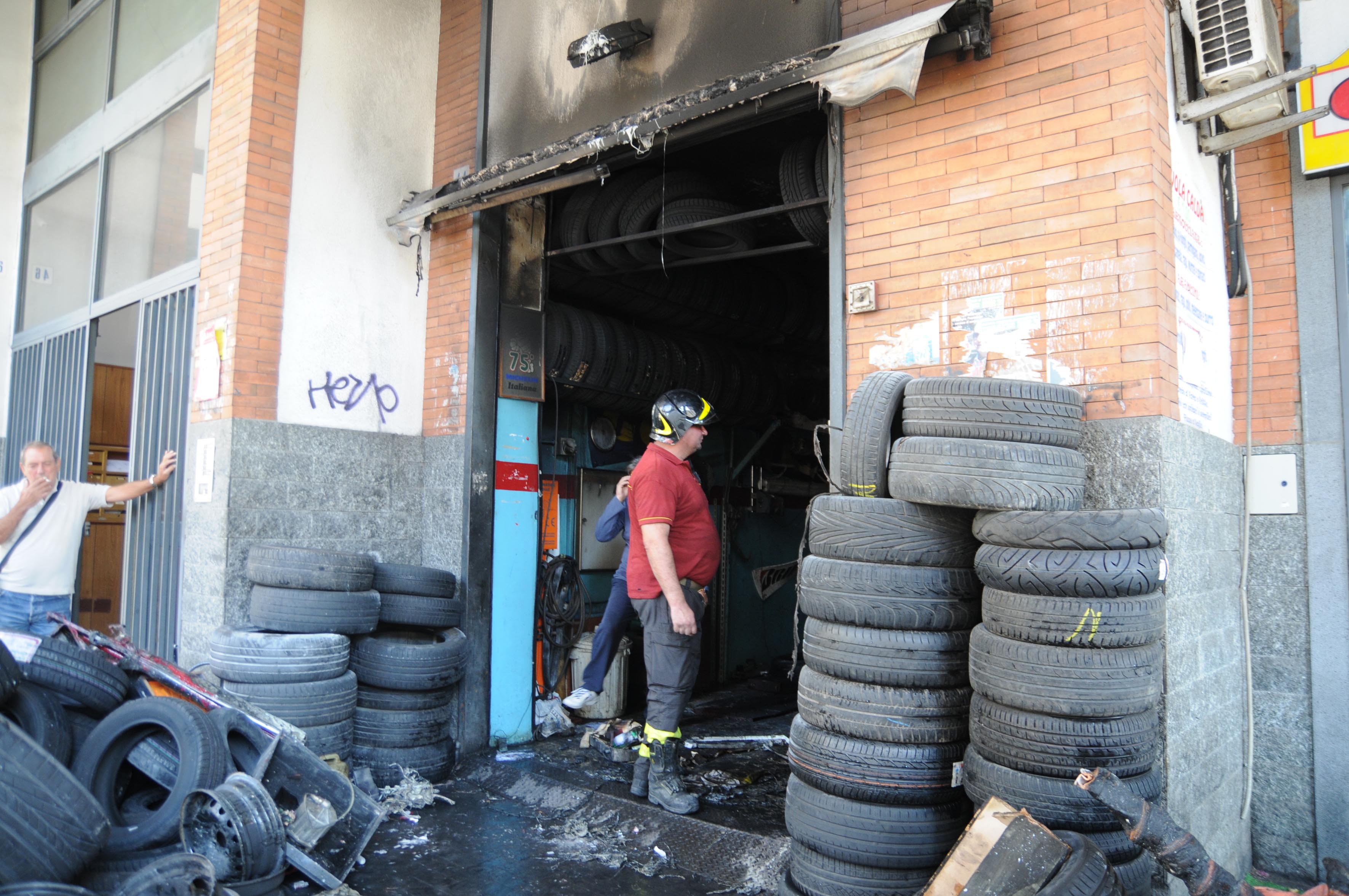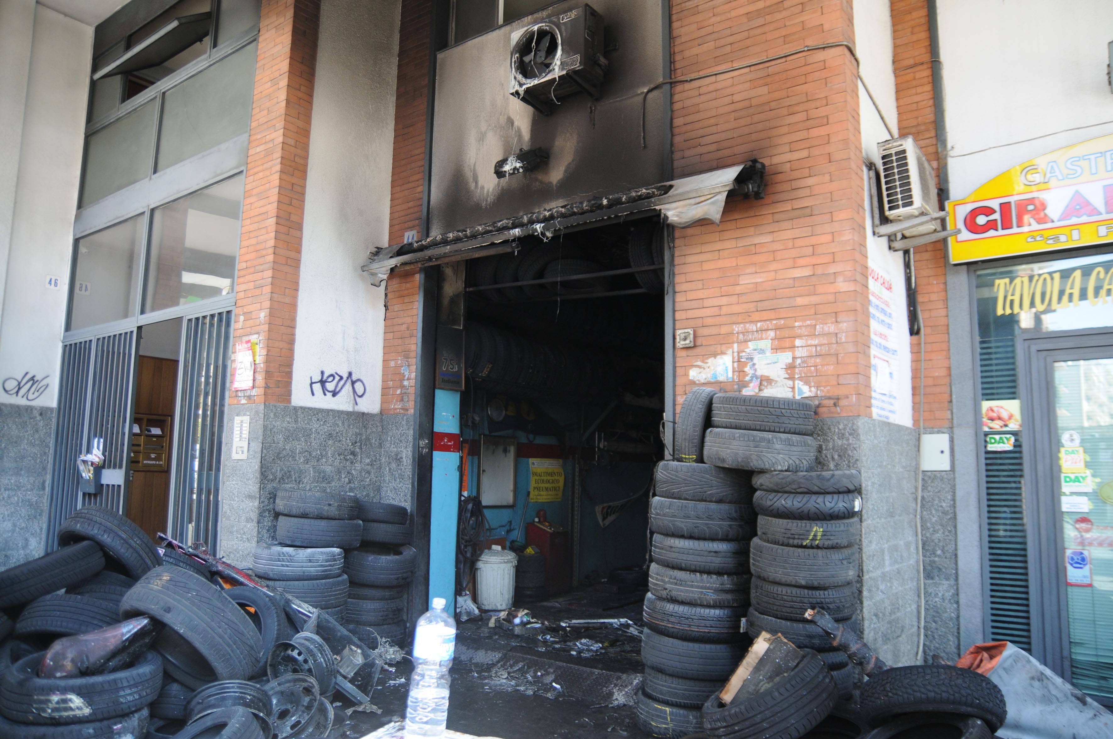 Pneumatici in fiamme in via Torino