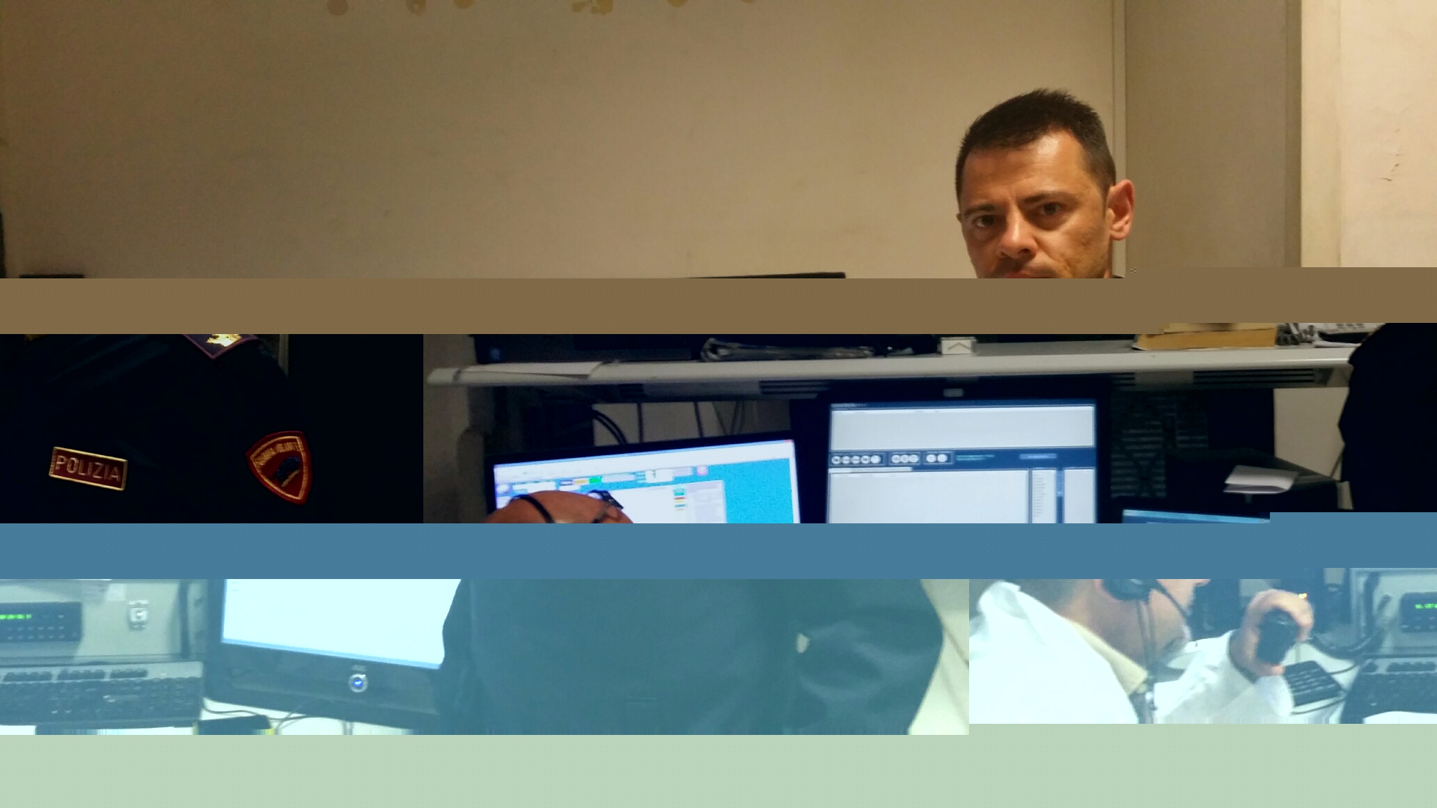 Gli operatori 113 e radio al lavoro in sala operativa.