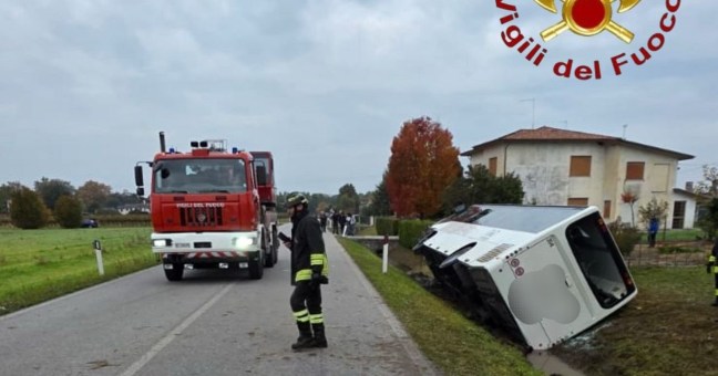 Tra gli studenti si registrano cinque ragazzi rimasti contusi e portati in ospedale per le cure e gli accertamenti del caso, così come l’autista del bus. La corsa della società Atvo, destinata prevalentemente agli studenti, è quella che parte da San Donà di Piave (Venezia) alle 6.30, passa per i comuni di Torre di Mosto e San Stino di Livenza, nel Veneziano, per raggiungere il comune di Oderrzo, nella zona delle scuole.