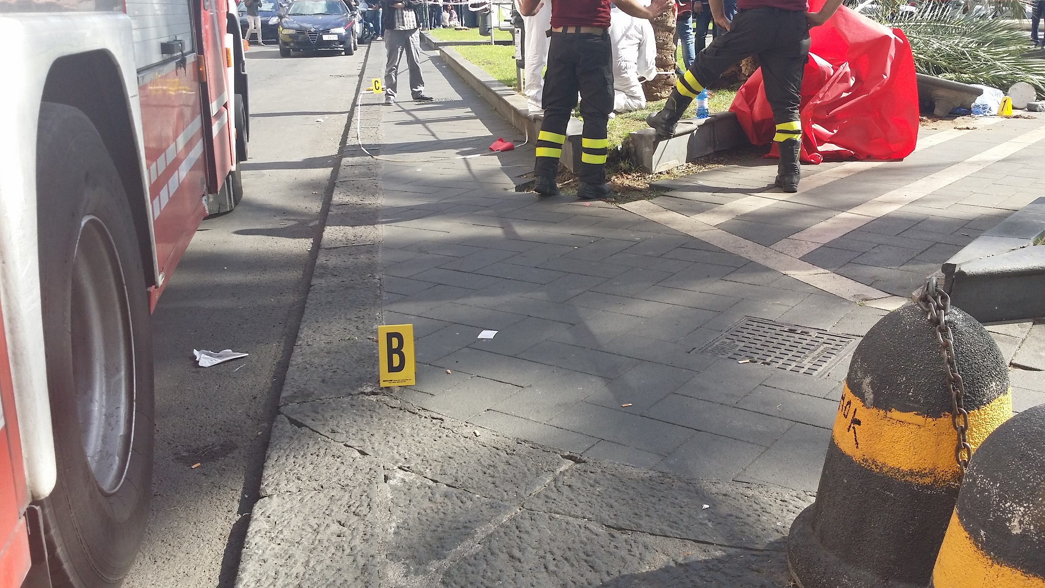I pompieri in azione a piazza Cutelli.