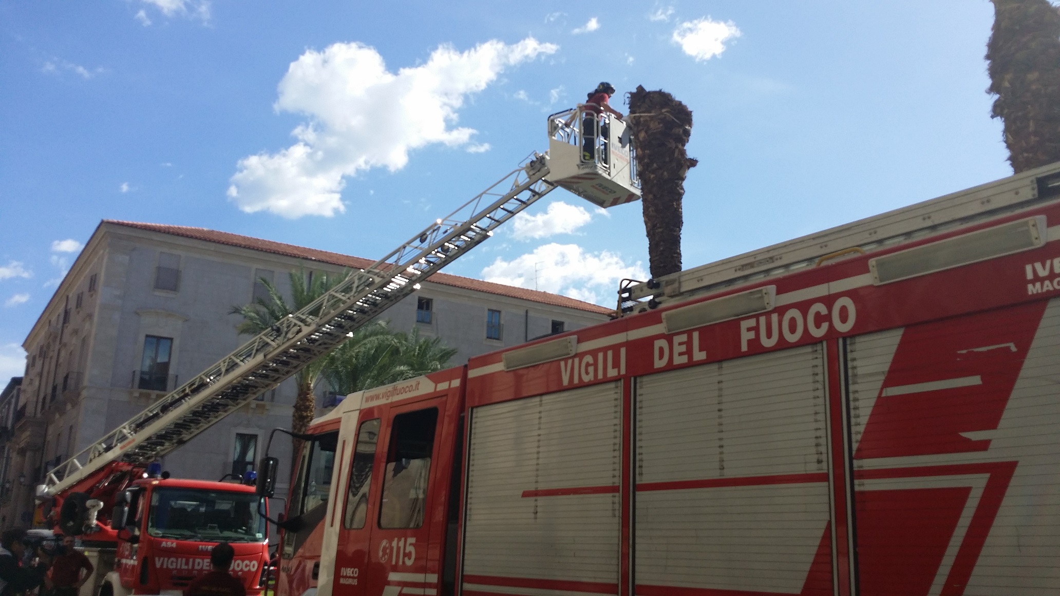Vigili del fuoco rimuovono la palma